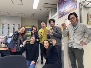 奥住さん、橋本さん、福嶋さんが修士課程を修了しました!3人とも本当に毎日頑張っていました。実験の楽しさも、厳しさも、奥深さも学んだエキサイティングな2年間だったと思いますが、3人の修論発表会は本当に素晴らしくとても成長を感じました。研究を続ける人も企業で活躍を目指す人もそれぞれの道で自分らしさを前面に出し、奥住さん、橋本さん、福嶋さんの人生が素晴らしいものになることを期待しています!修了おめでとう!(古賀)
